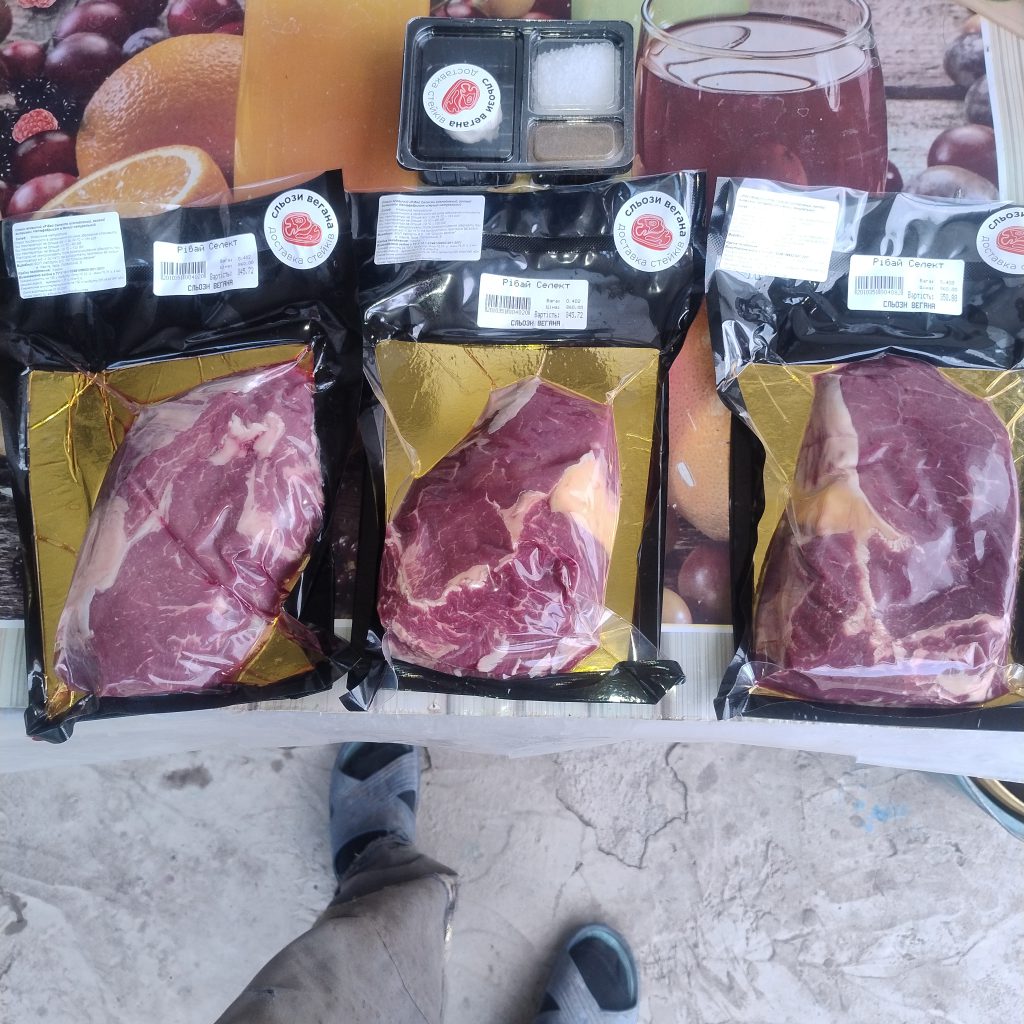 добрий день! так, все сподобалось) стейкі супер! пакування вразило: лід, спецій, підпіс. дякую, що компактно все і не прийшлось дорого платити за доставку. буду замовляти ще.