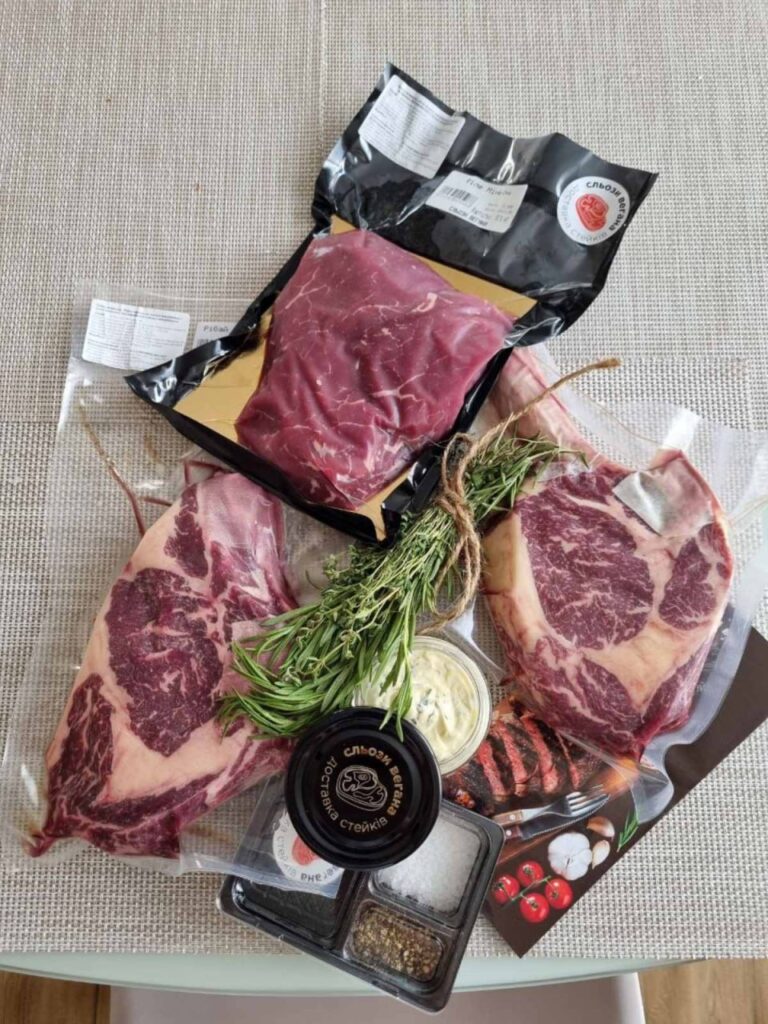 привіт! авжеж, все чудово:) Миле пакування, інструкція(без якої я би не впоралась), бонус у вигляді солі і свіжого перцю з часничком. Саме м’ясо — шикарне:) свіже,