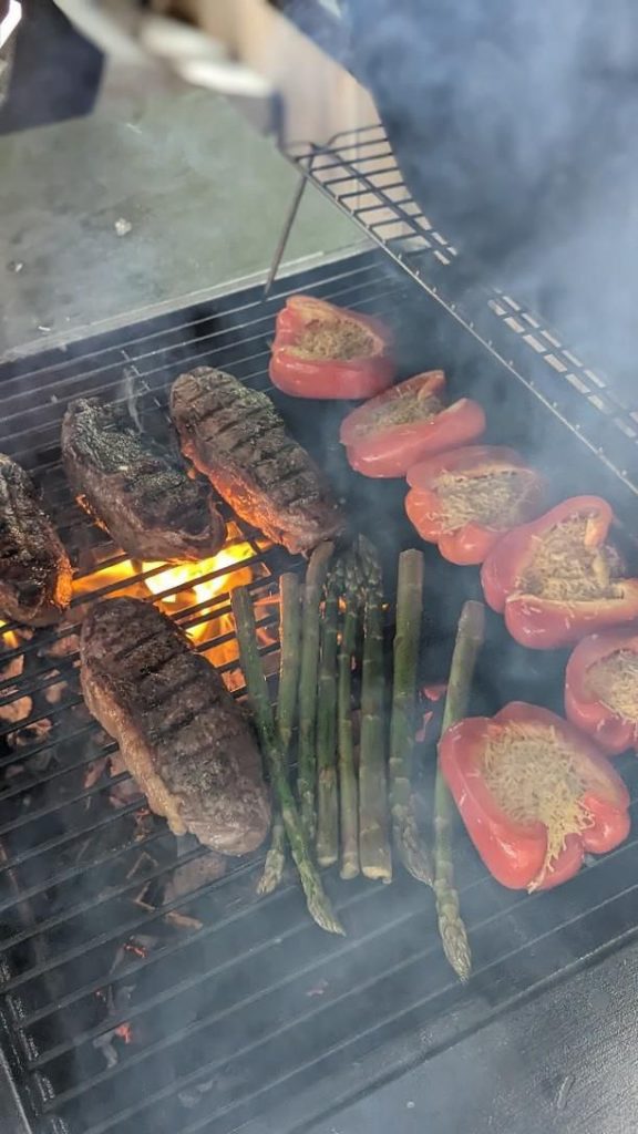 Классический стейк Нью Йорк, как правило, готовят на открытом гриле до степени прожарки Medium. Заправляют только большим количеством соли и перца, а по желанию можно добавить немного ароматного розмарина.